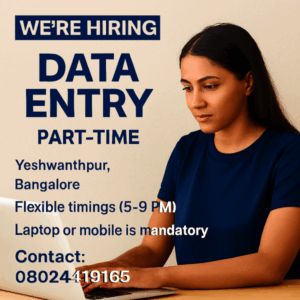 Join Us| Data Entry Executive | Part-Time role near Yeshwanthpur at your flexible timings