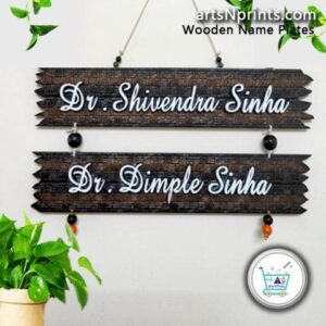 Add a warm and stylish identity to your entrance with this personalized hanging wooden name plate for doctor couples, beautifully handcrafted by artsnprints.com.