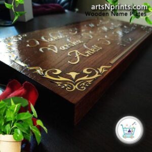 Enhance your home entrance with timeless elegance using the “Vaishno Dham” premium engraved wooden name plate, beautifully crafted by artsnprints.com.